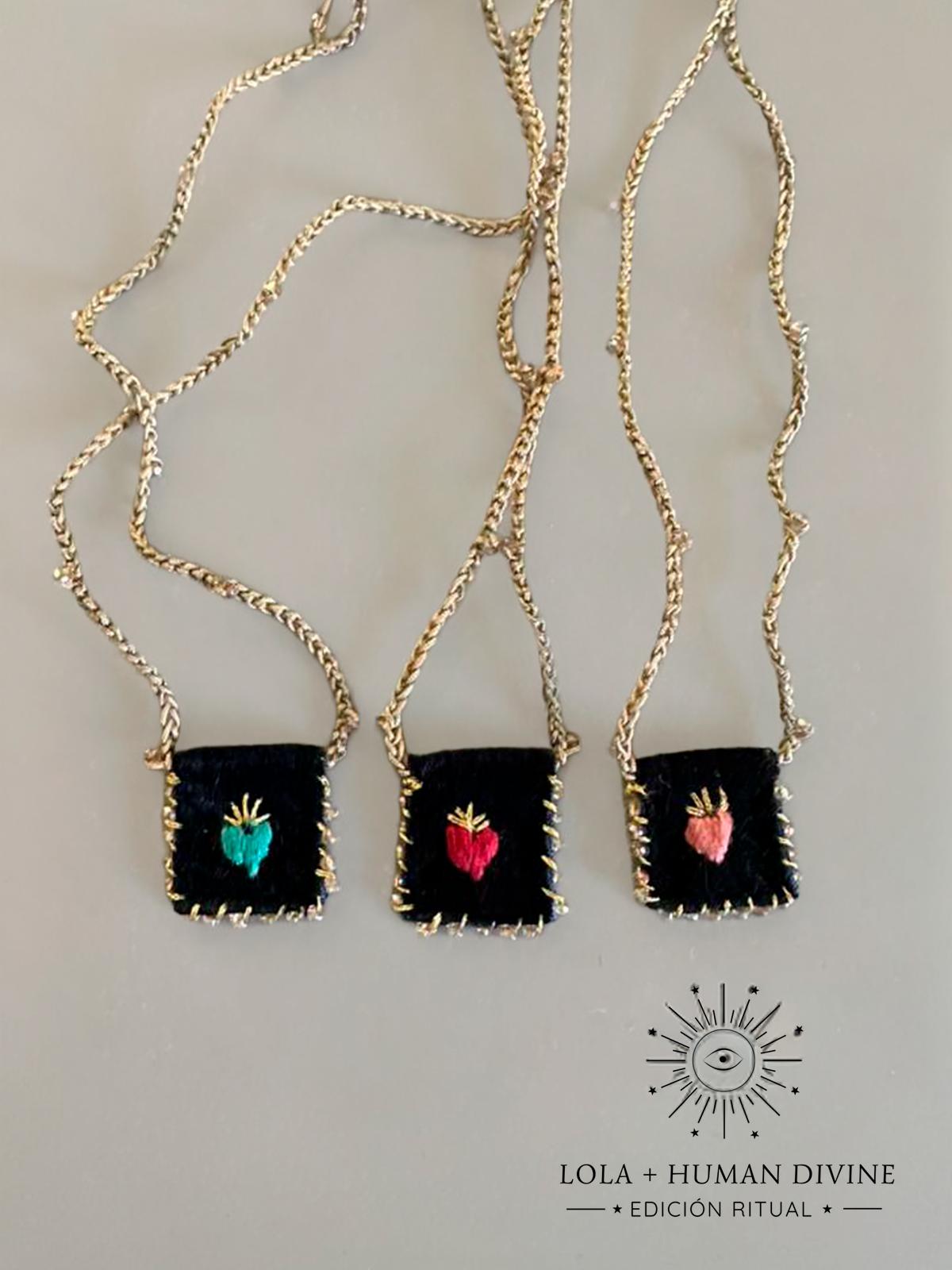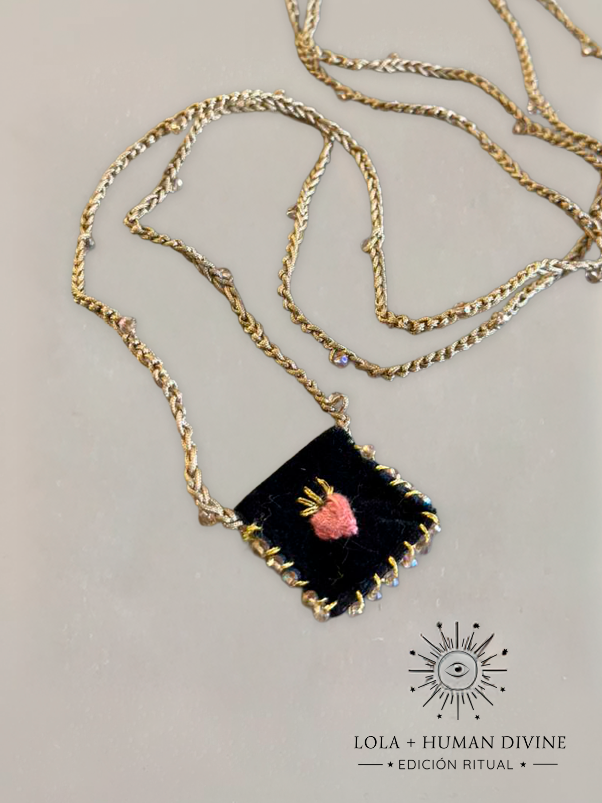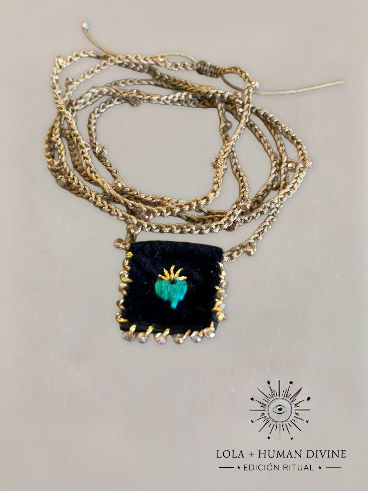 Esta colección nace del encuentro entre dos universos creativos: la mirada simbólica y espiritual de Human Divine y las manos artesanas de Lola Art & Design.